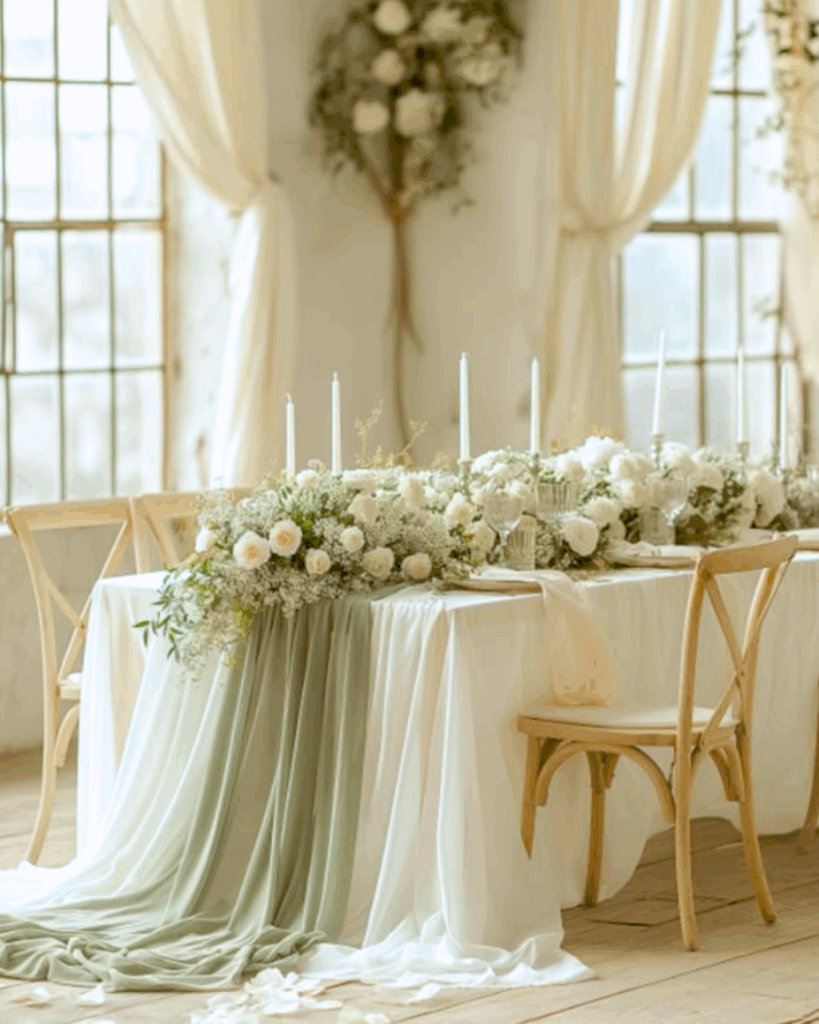 Décorations : chandeliers, housses, nappes, chemins de table, fleurs artificielles etc.